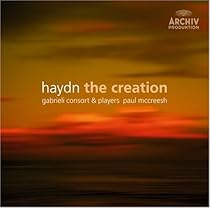 Okay first things first. This new recording of the English version of Haydn's Creation oratorio goes right to the fav shelf. There you will also find several German language versions, plus a few English ones. Old favs tend to be big bands with conductors like Marriner/ASMF first set, Harnoncourt/Vienna SO first set, Munchinger/Vienna PO, Dorati/RPO, Rafael Fruhbeck de Burgos on EMI. Newer favs tend to be period or smaller bands.
